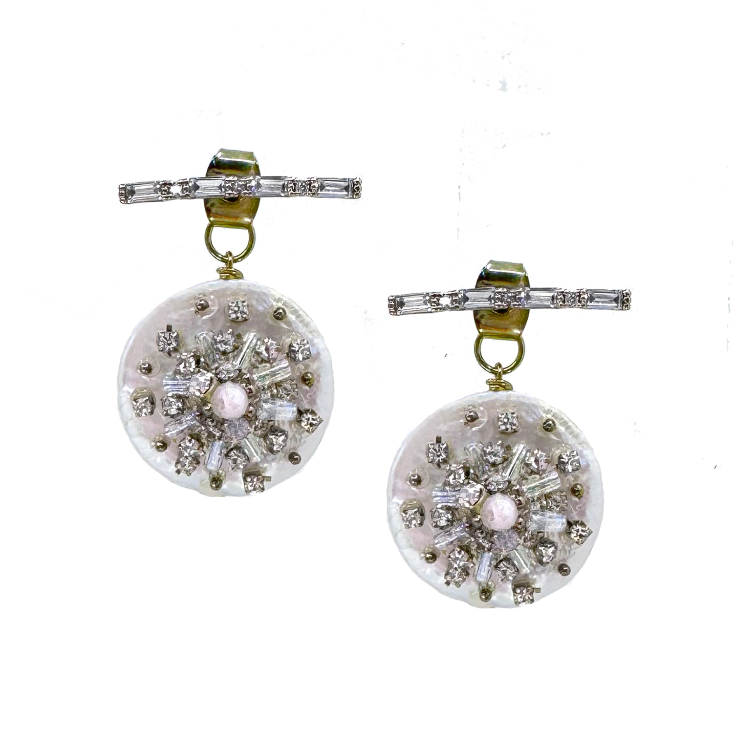 Back and Front earrings with crystal embellished coin pearl