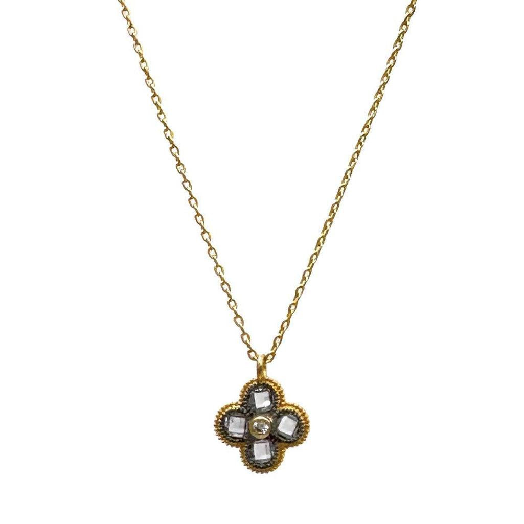 Two tone crystal flower pendant in gold and rhodium vermeil