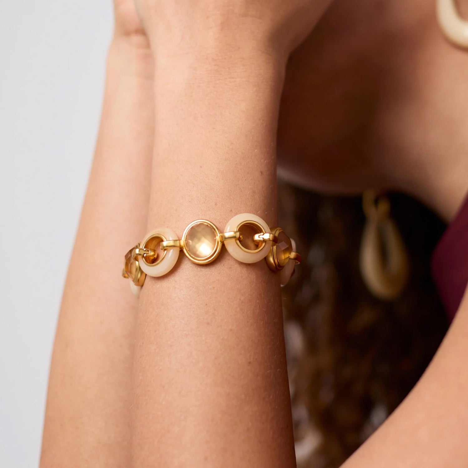 Carnaby stone bracelet features ivory round links and faceted champagne stones
