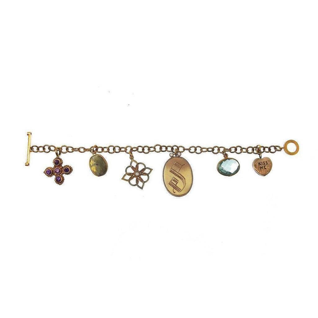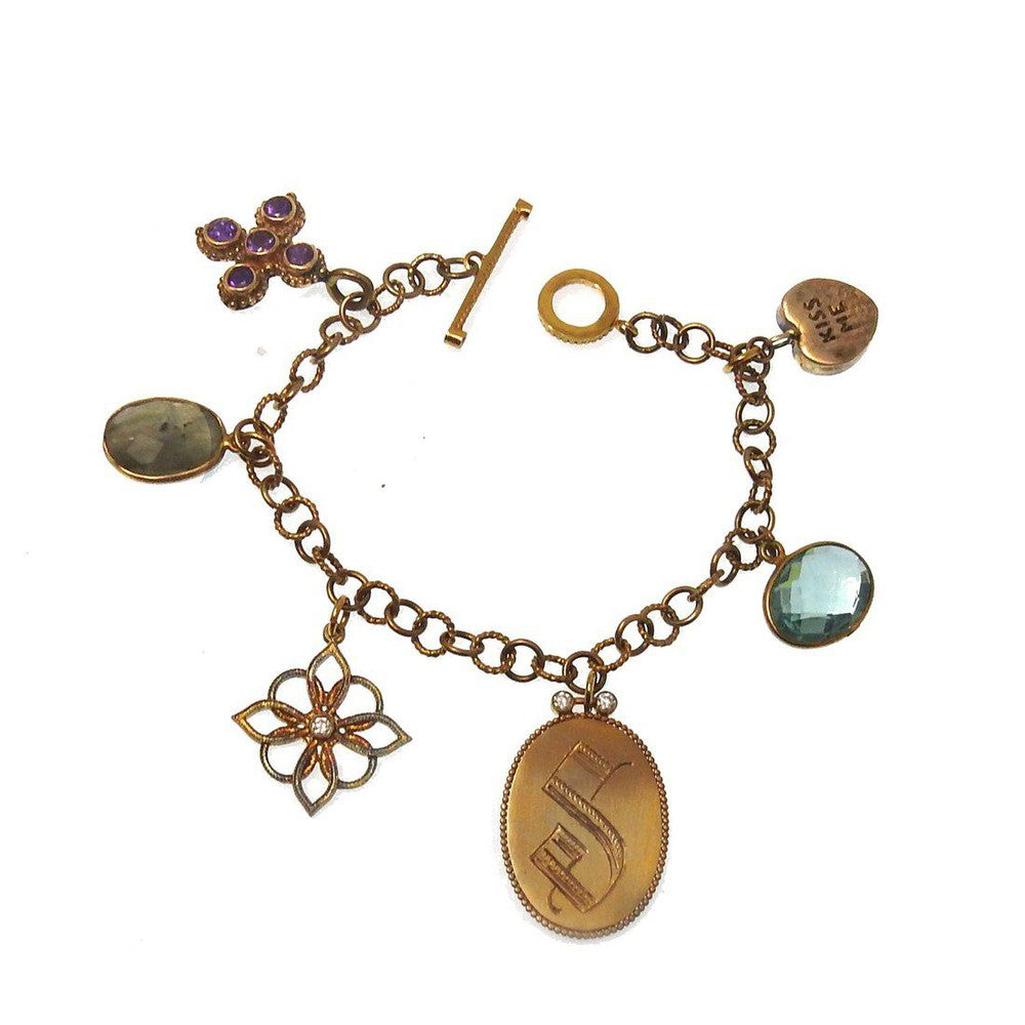 Charm Bracelet with vintage locket, amythest Cross, and unique vintage charms