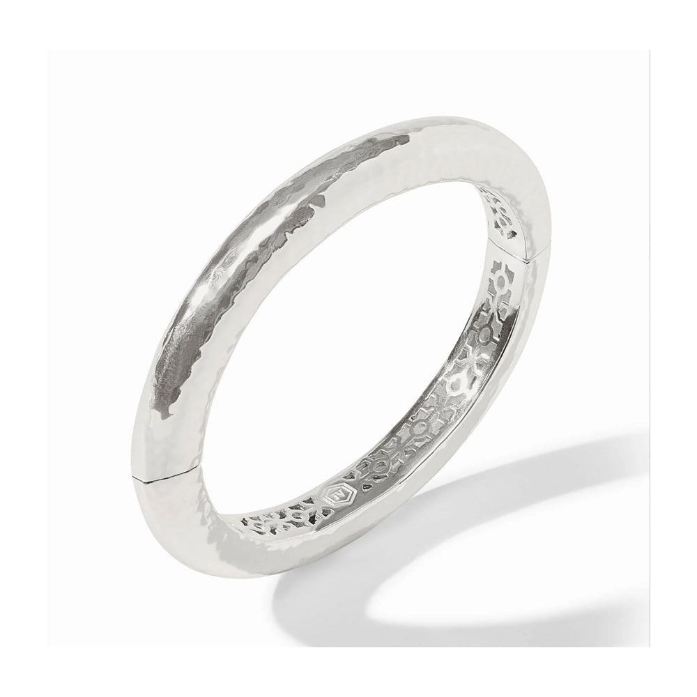 Hinged Catalina bangle bracelet in silver, modern bangle with light hammered texture