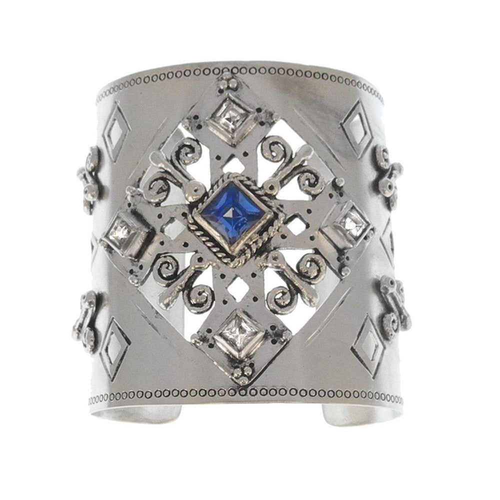 Statement Cuff in silver with open cut design, embellished with Swarovski Crystals, from the Paloma Collection.