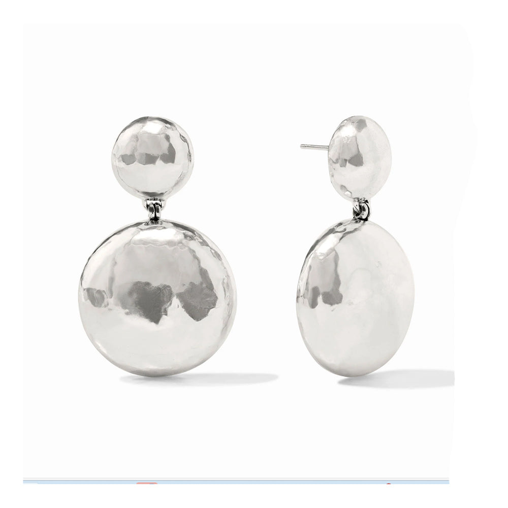 Solara earring -modern elegant and organic, these hammered silver earrings feature a post closure