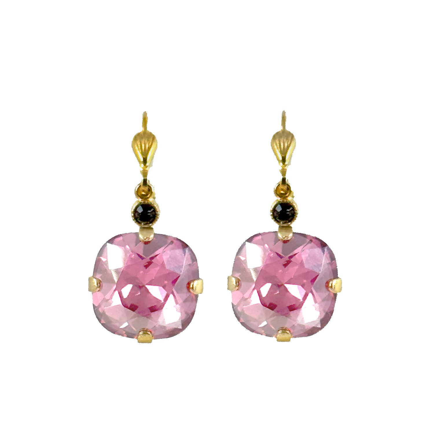 Cushion Cut Swarovski Crystal prong set with hook closure in gold with pink crystal