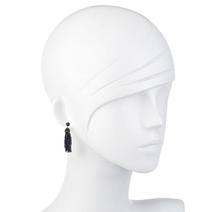 Tassel earrings with hand set high quality CZ, Gun metal finish