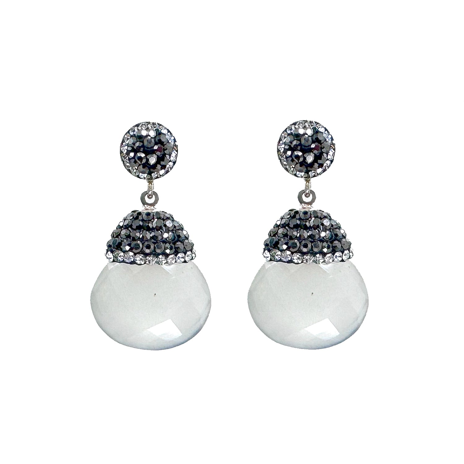 Earrings with hand set high quality CZ, Crystal, Sterling Silver metal finish