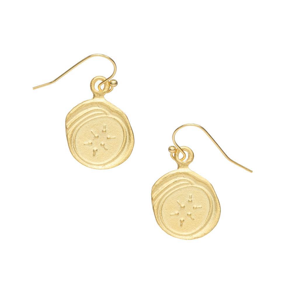 Widow's Mite Earrings in gold on wire. The story of the Widow's Mite coins comes from the Bible. A widow gave 2 coins to the temple treasury. They were the smallest and least valuable of coins at the time. Jesus witnessed her offering, and He deemed it very valuable - because she gave all she had