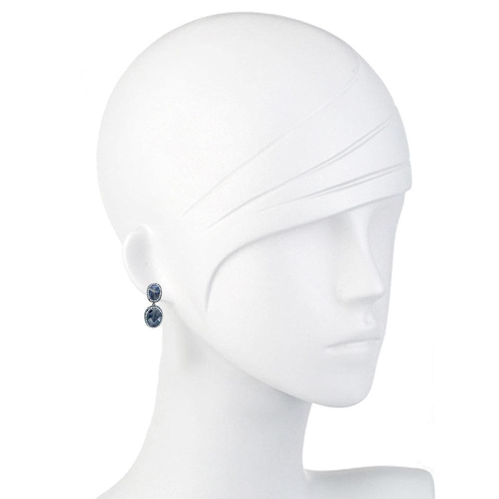 Double drop earrings with hand pave crystals and hematite faceted stones, Sterling Silver metal finish