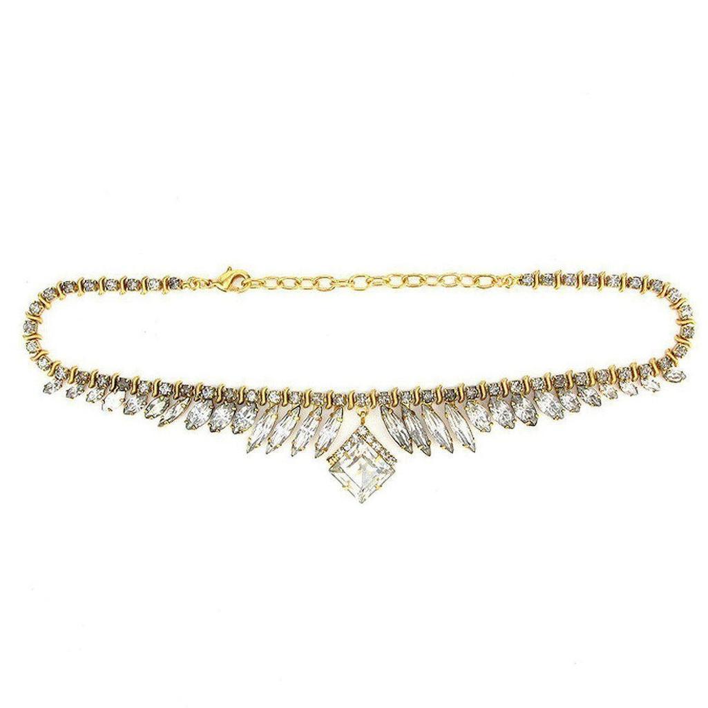 Gold necklace with clear crystal embellishments. Approx 16" Long with extender