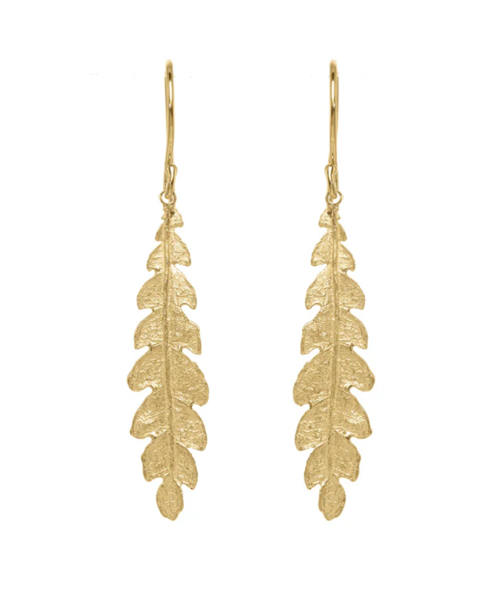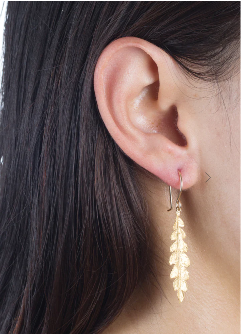 These earrings, inspired by plumeria leaves, showcase an organic texture and are meticulously designed for comfortable, lightweight wear and striking appeal. The natural texture of the plumeria leaves is authentically preserved and enhanced, available in 18k gold vermeil. Each piece is handcrafted in Hawaii.