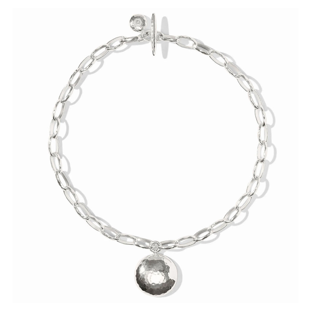 Solara Link Necklace in silver with hammered disc pendant, oval links and toggle closure