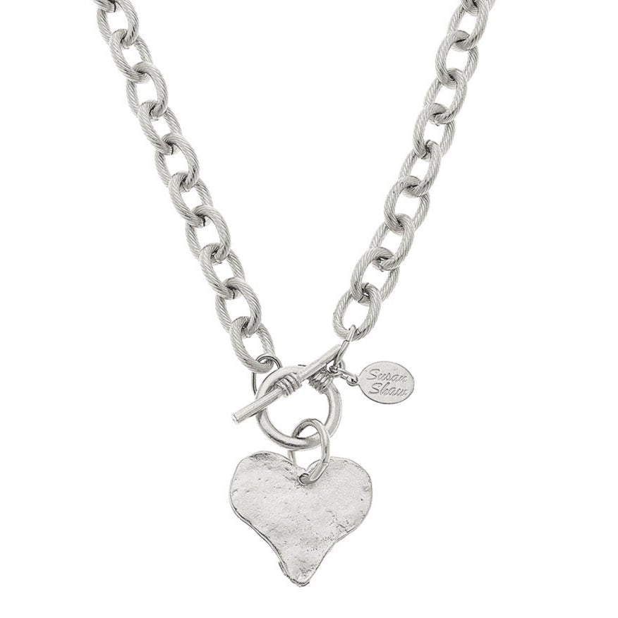 Hand cast silver cross toggle necklace with link chain