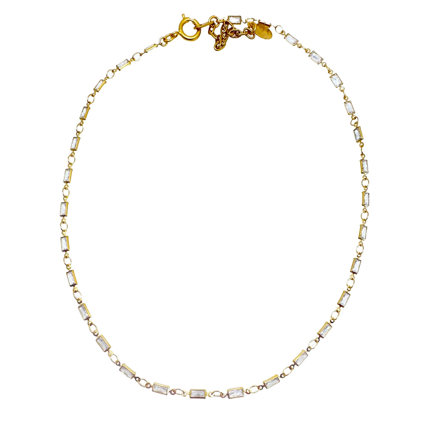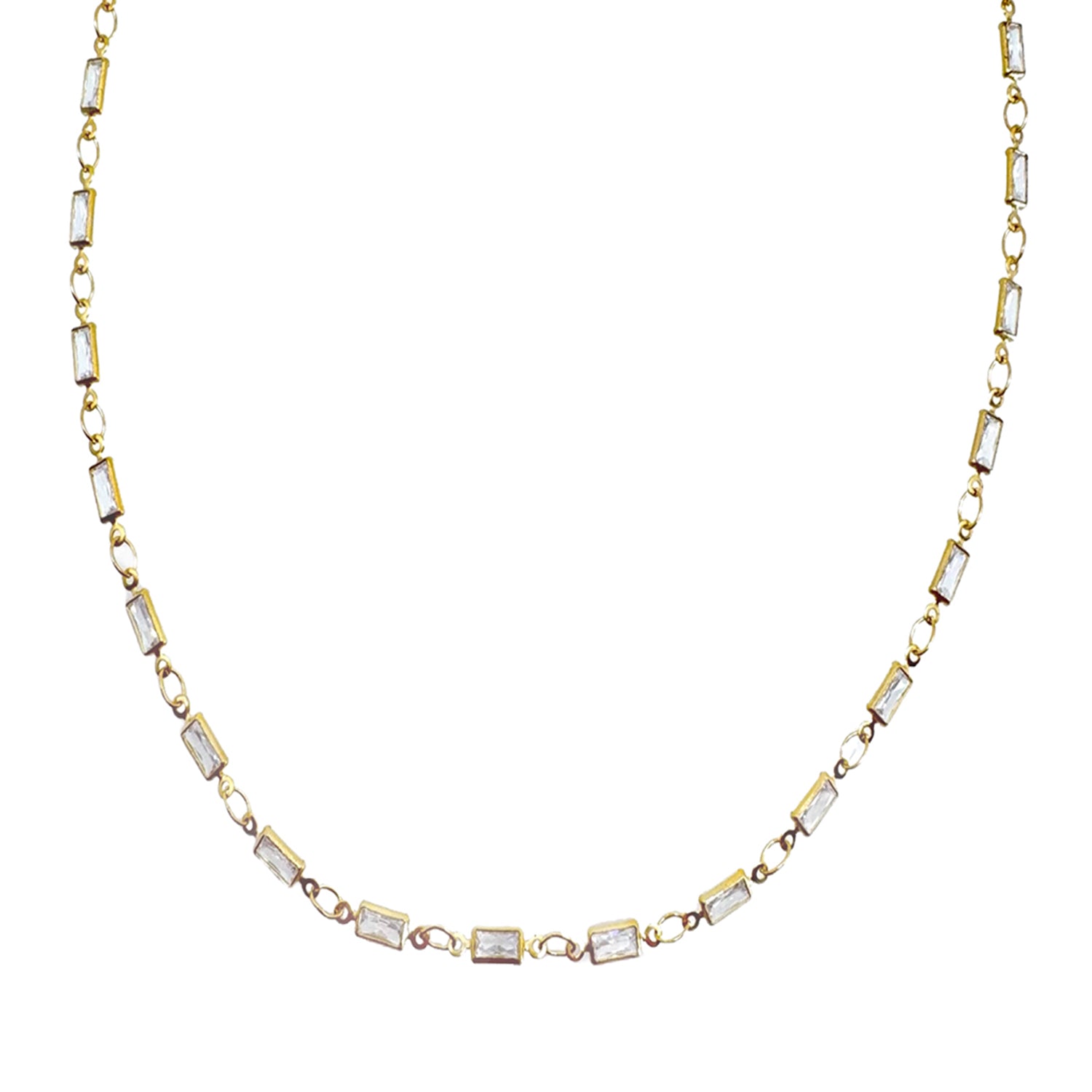 Stationed clear emerald cut crystal pendants on delicate chain