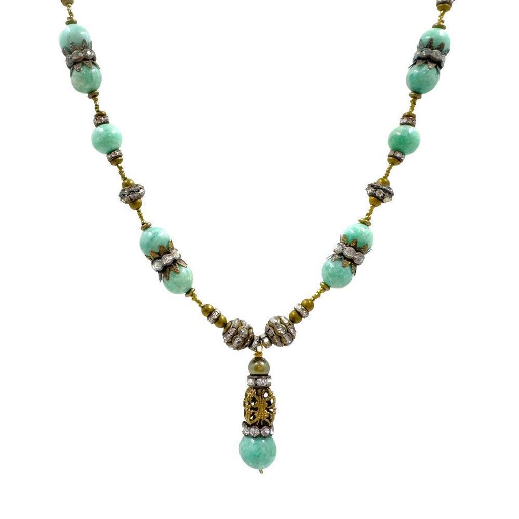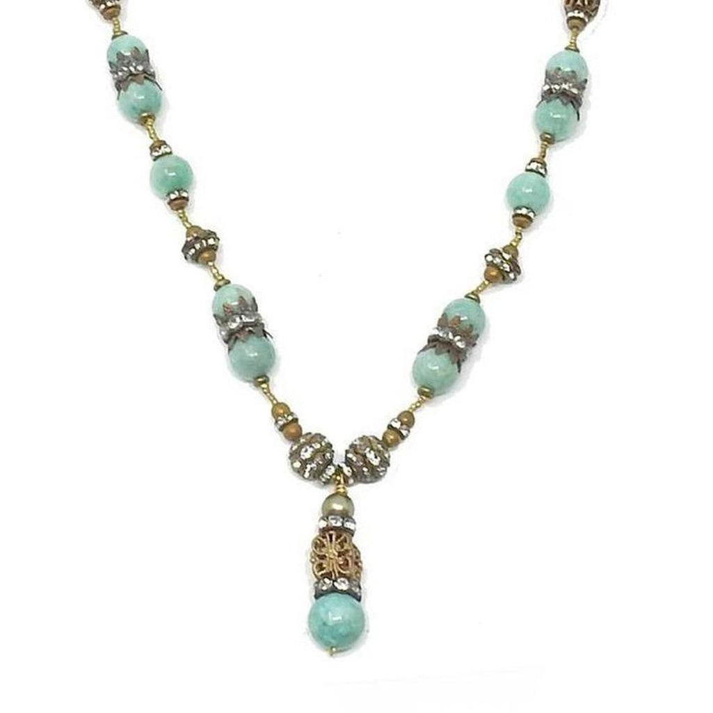 Vintage beads, rhinestones and turquoise. Approx 36" Long