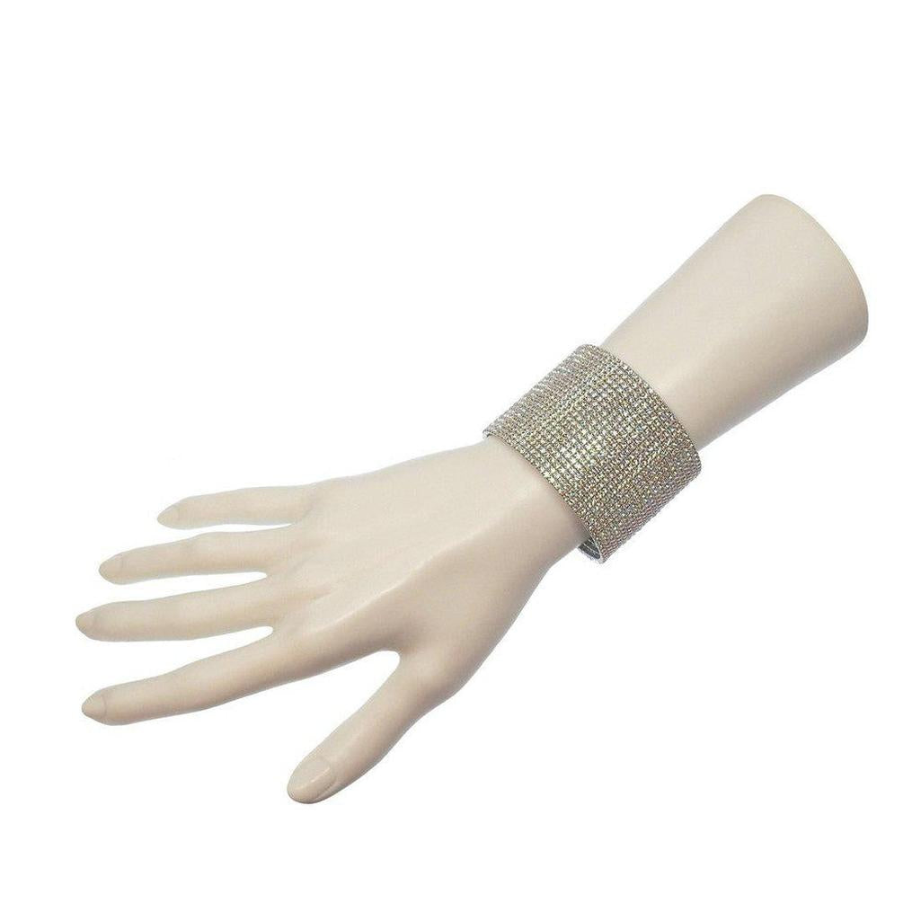 Dazzling flexible cuff encrusted with swarovski crystals. Perfect for evening or wear with an edgy leather outfit!