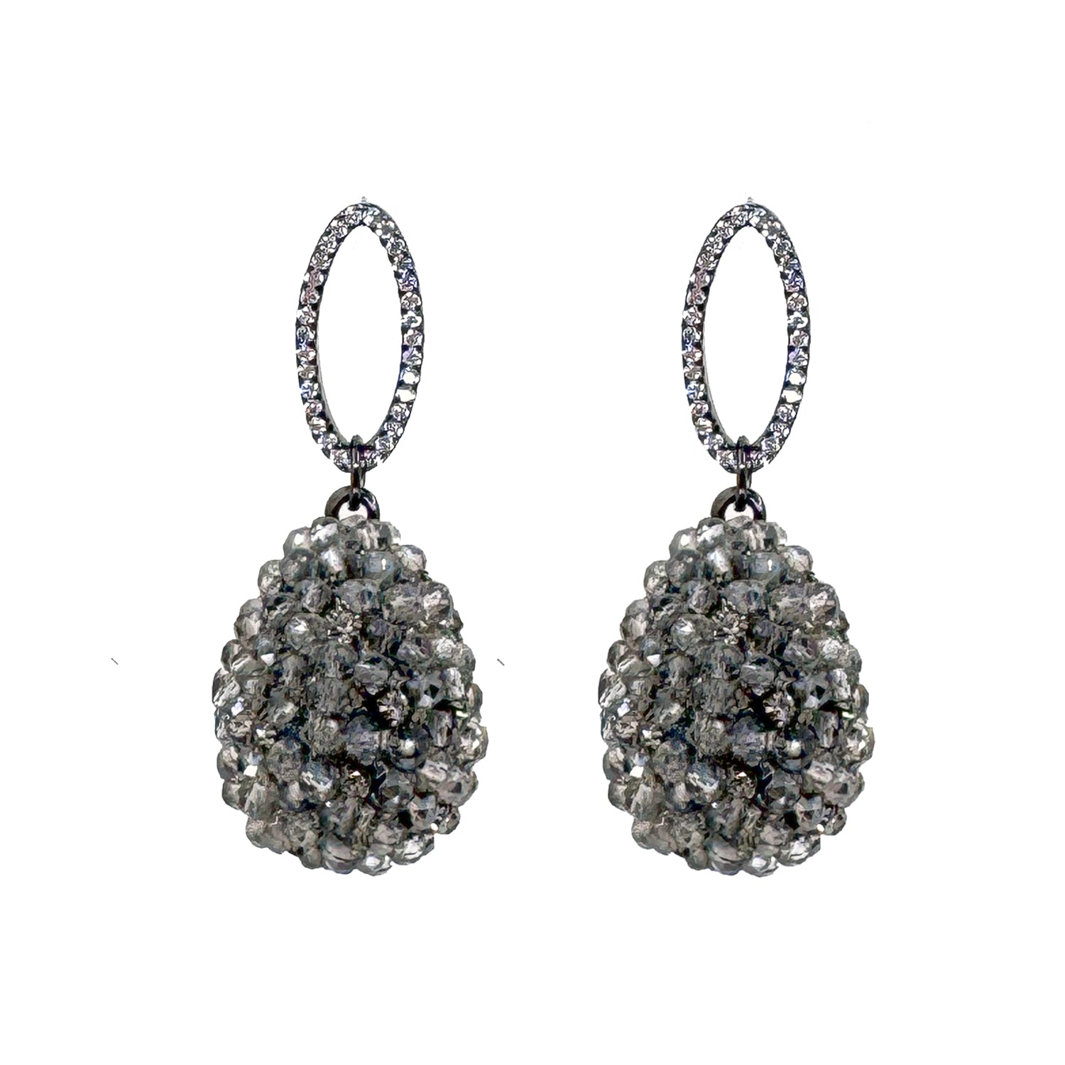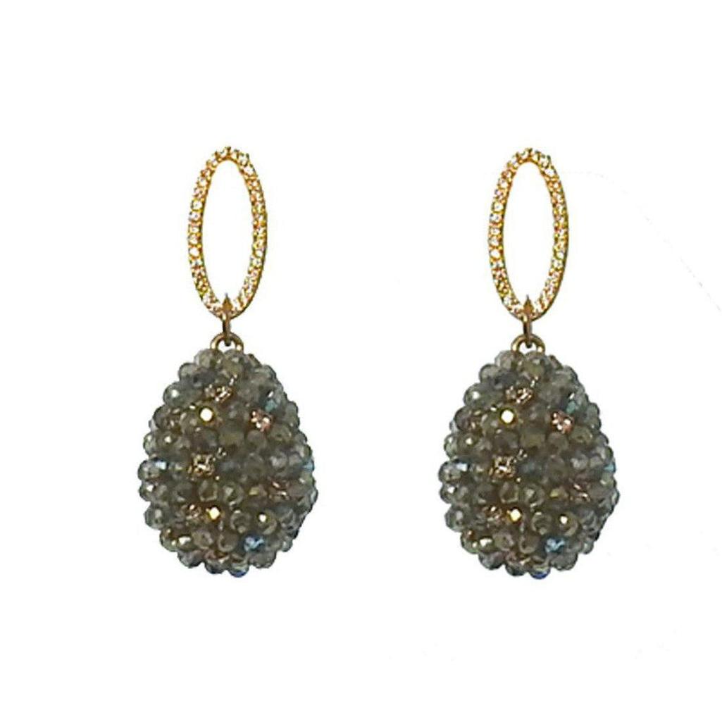 Open oval CZ accented green Swarovski crystal and CZ studded dew drop earrings, Gold finish