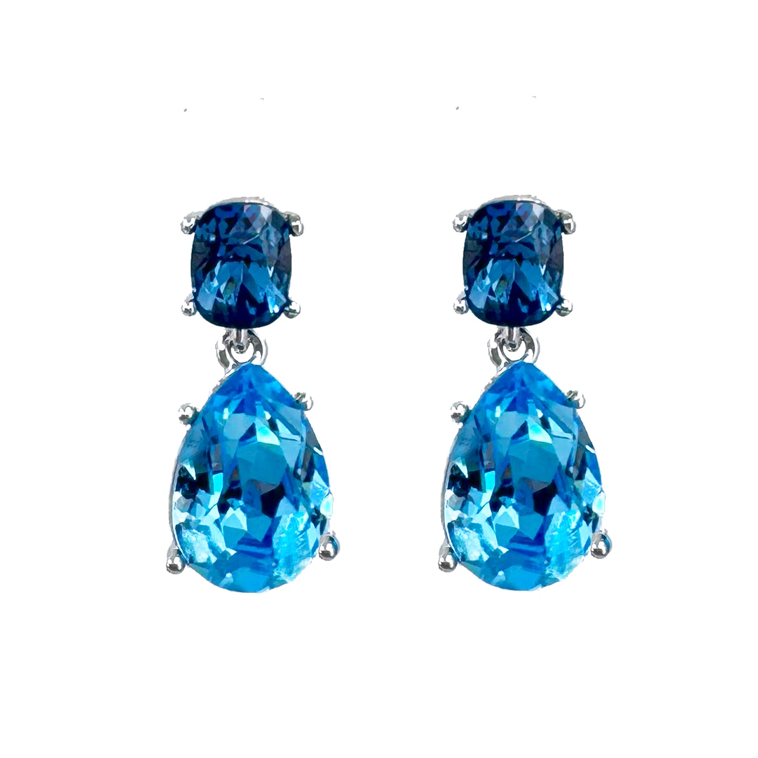 Hematite and Clear Swarovski Crystal two tier drop earrings, silver finish