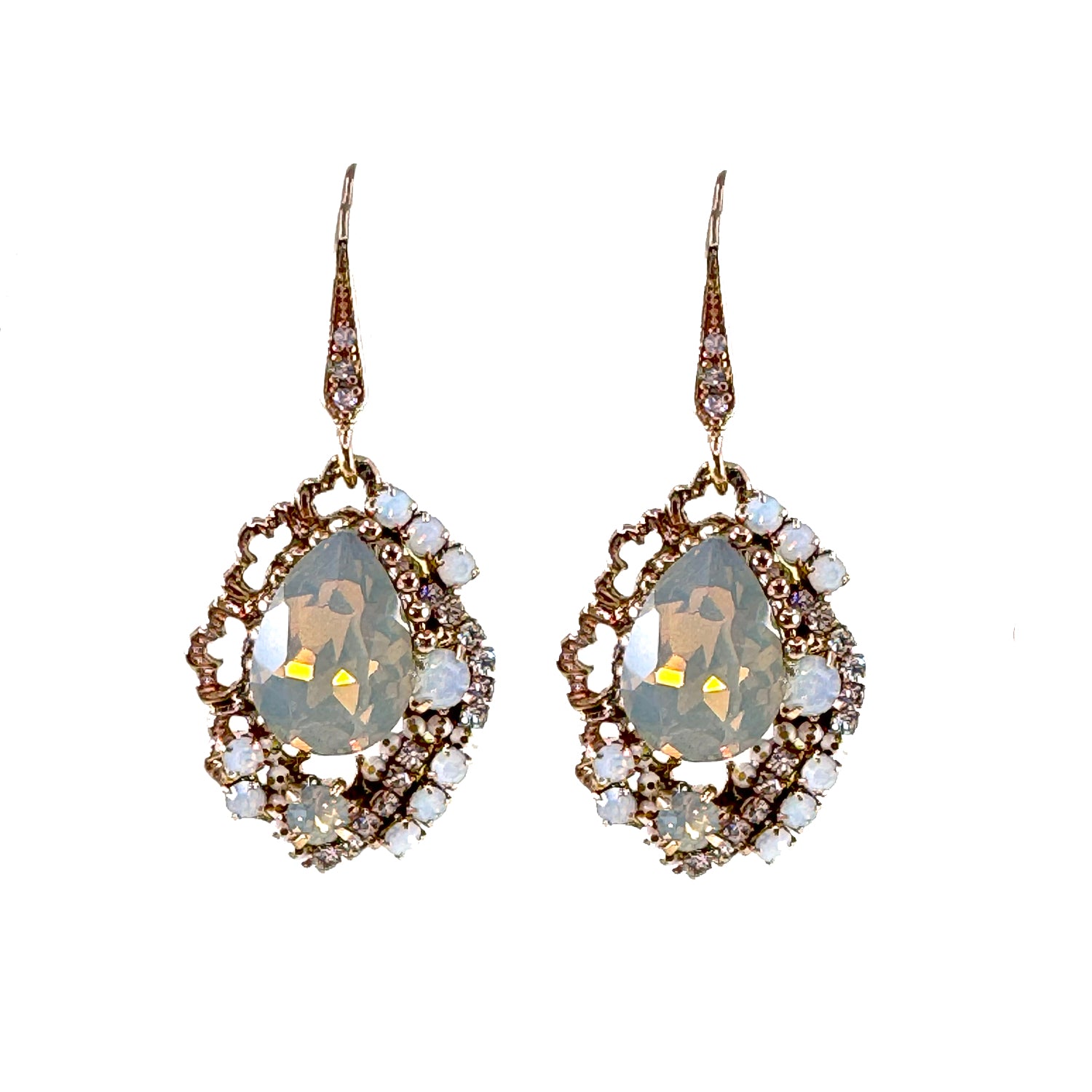 Earrings with Opal Swarovski crystals, Antique gold finish