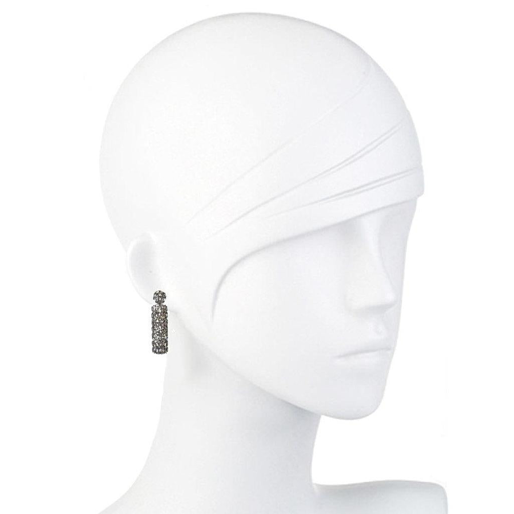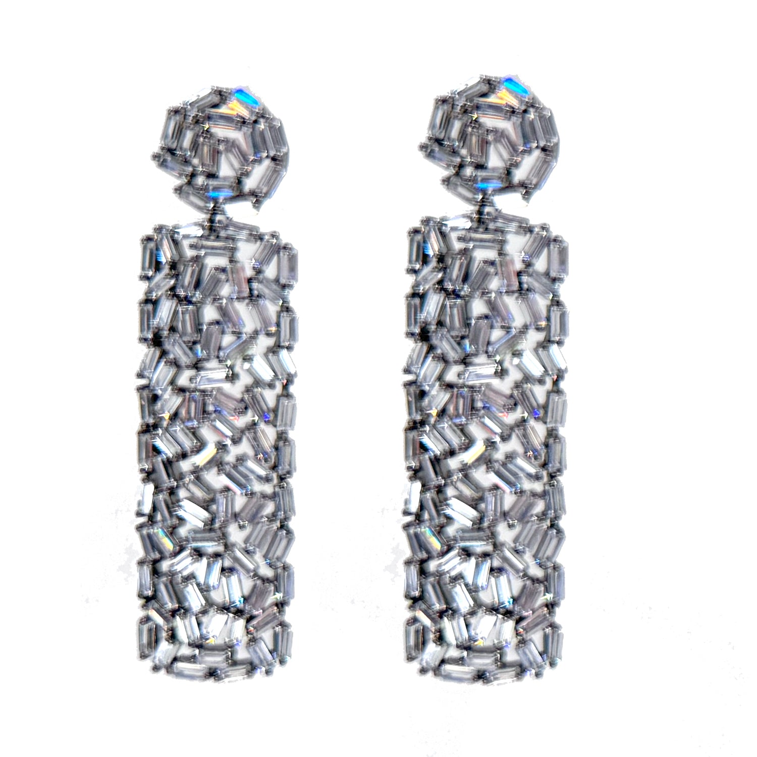 Round and Rectangular drop earrings with hand set high quality CZ, Gun metal finish