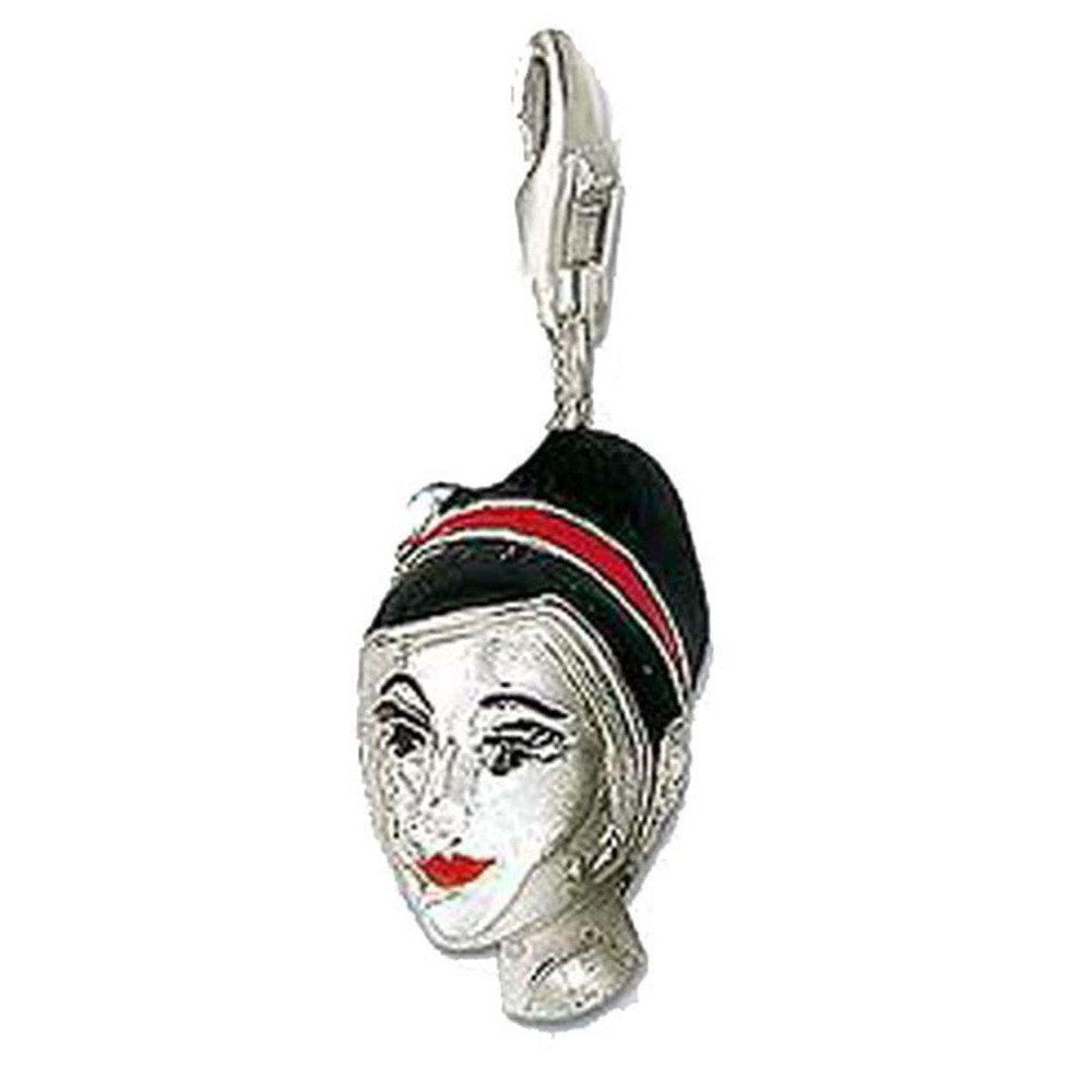 Show your style with this Thomas Sabo Lucy Head charm. This fashionable charm features polished sterling silver and is accented with black and red enamel. Express your inner fashionista with this chic charm.