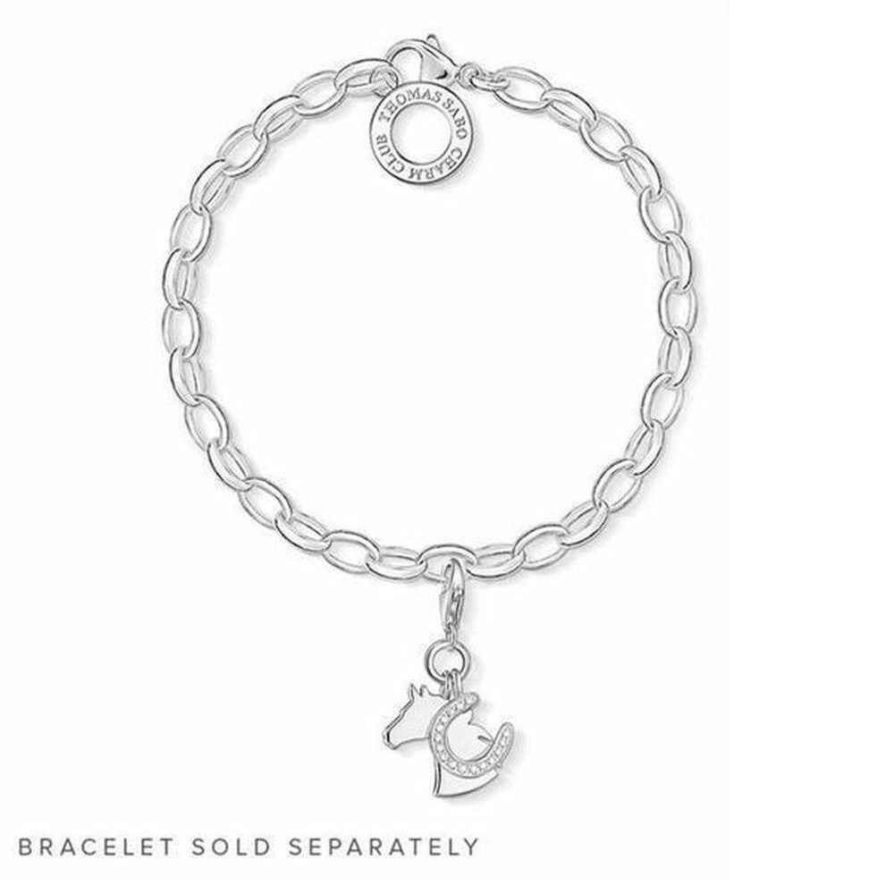 This beautiful sterling silver horse charm with the good luck horse shoe with clear cubic zirconia stones will add sparkle to your Thomas Sabo charm bracelet.