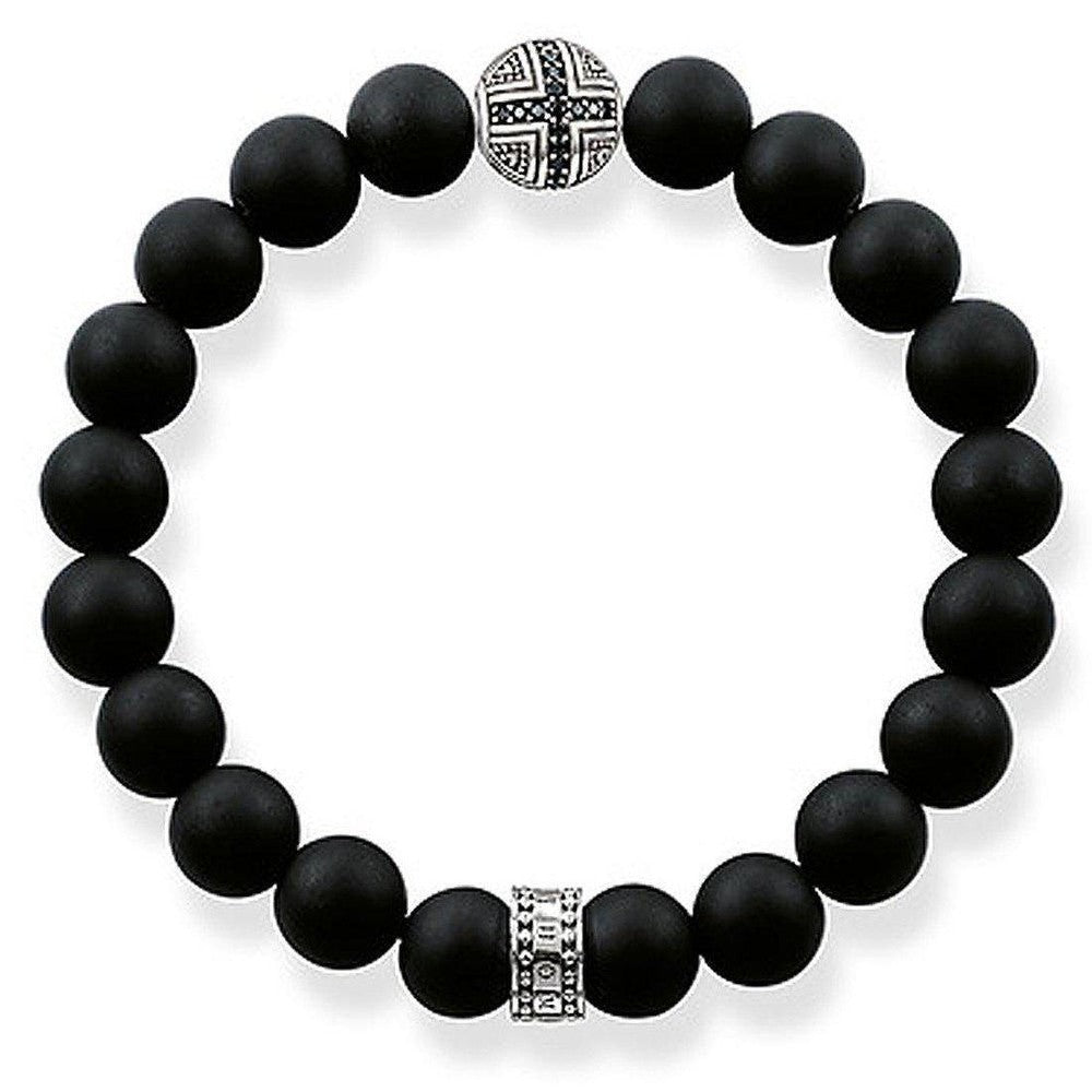 Thomas Sabo Bracelet with honed obsidian beads and an accent bead with a cross detailed with black cz..