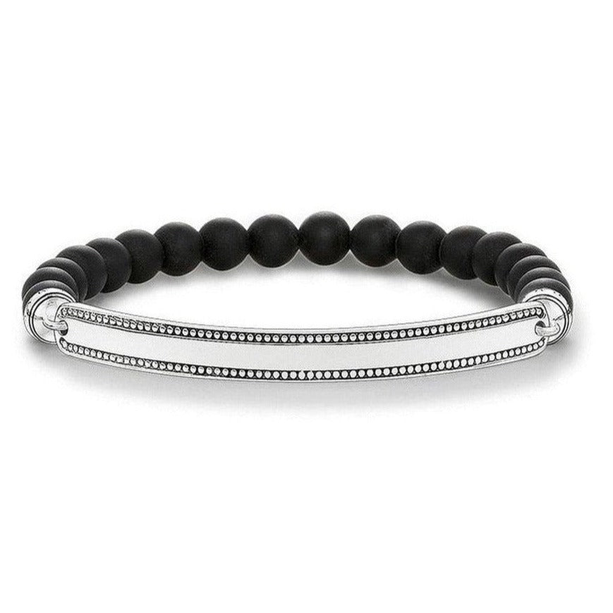 Engravable Sterling Silver and Obsidian Beaded stretch bracelet