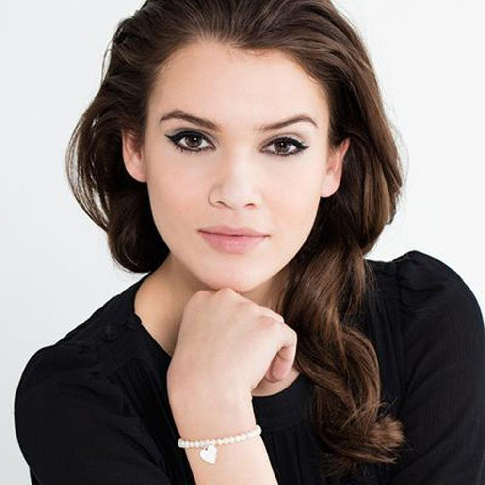 Pearl Beads on stretch bracelet with engravable heart shaped  disc
