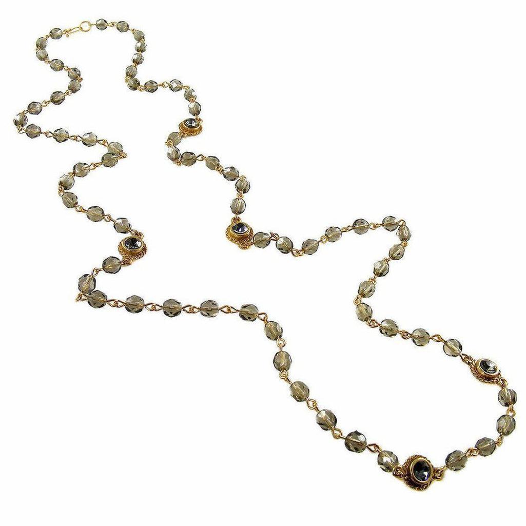 Virgins Saints and Angels Magdalena Wrap in Gold with Black Diamond crystals is a decadent rope of beads and dazzling crystals bezel set in stations. With 36" to play with, wear it as one long strand, doubled, or wrapped as a stunning bracelet.
