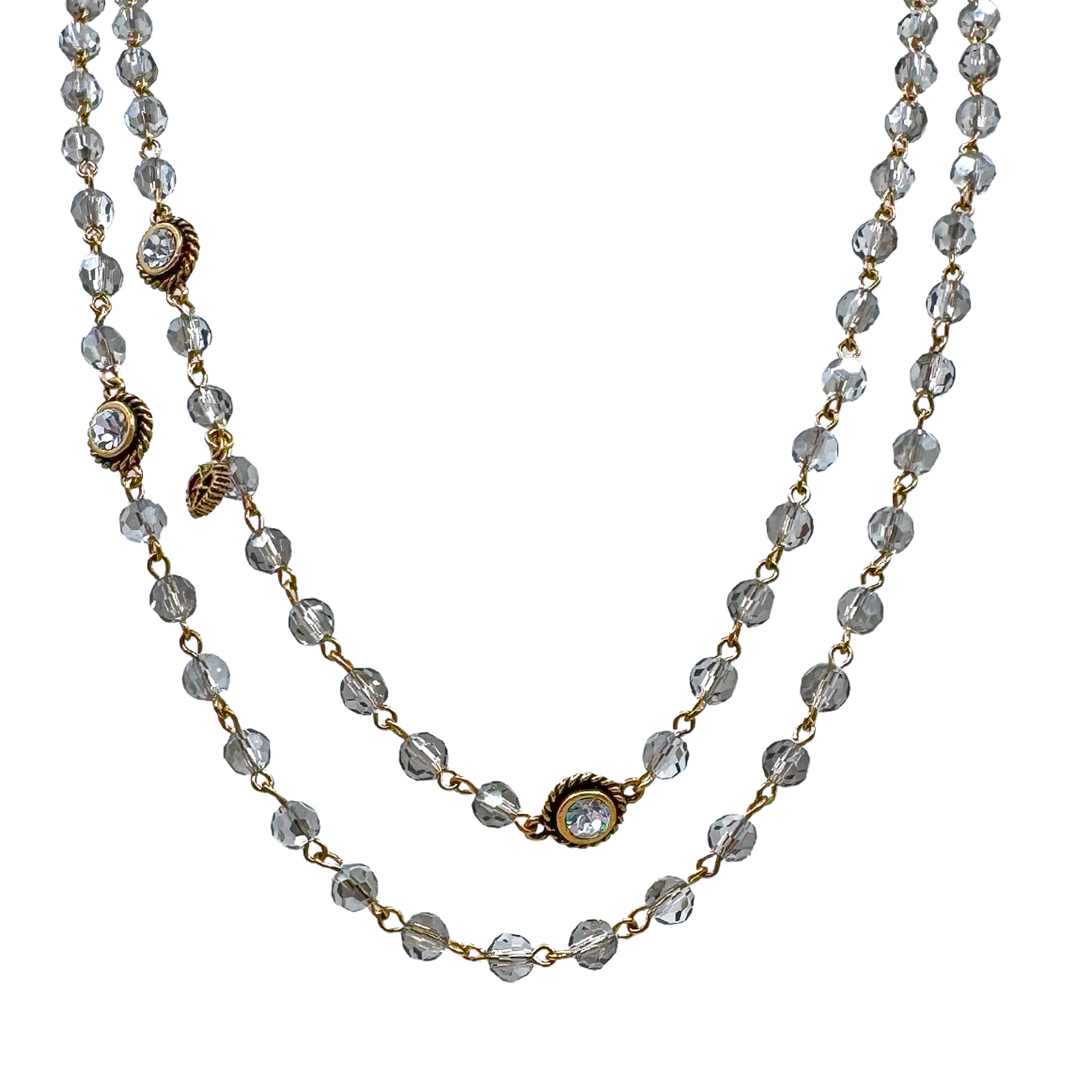 Virgins Saints and Angels Magdalena Wrap in Gold with crystals is a decadent rope of beads and dazzling crystals bezel set in stations. With 36" to play with, wear it as one long strand, doubled, or wrapped as a stunning bracelet.