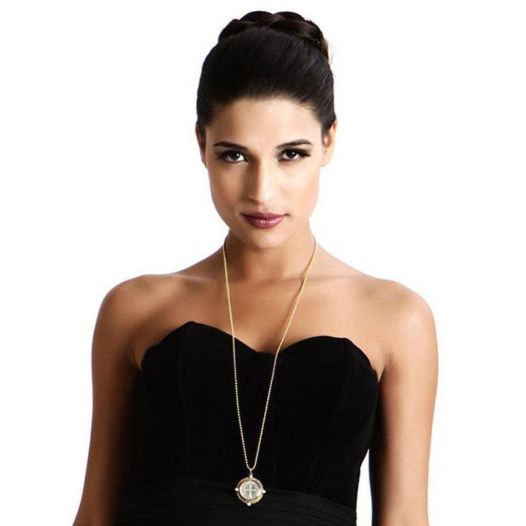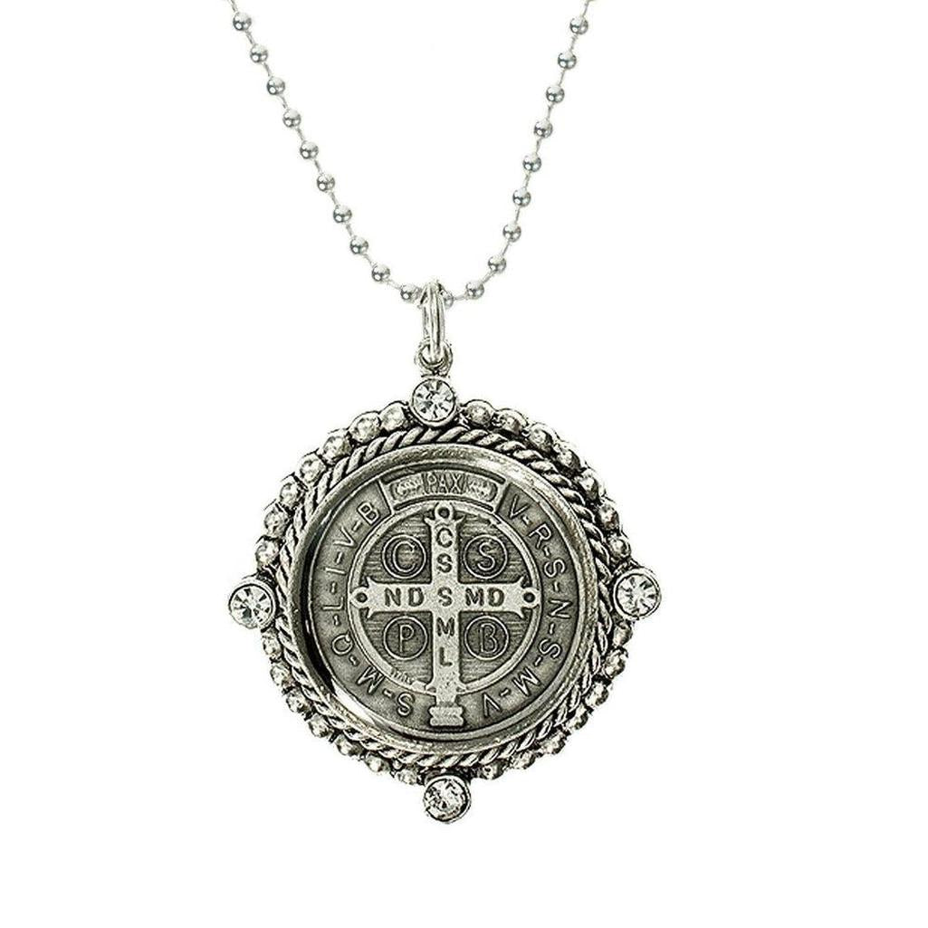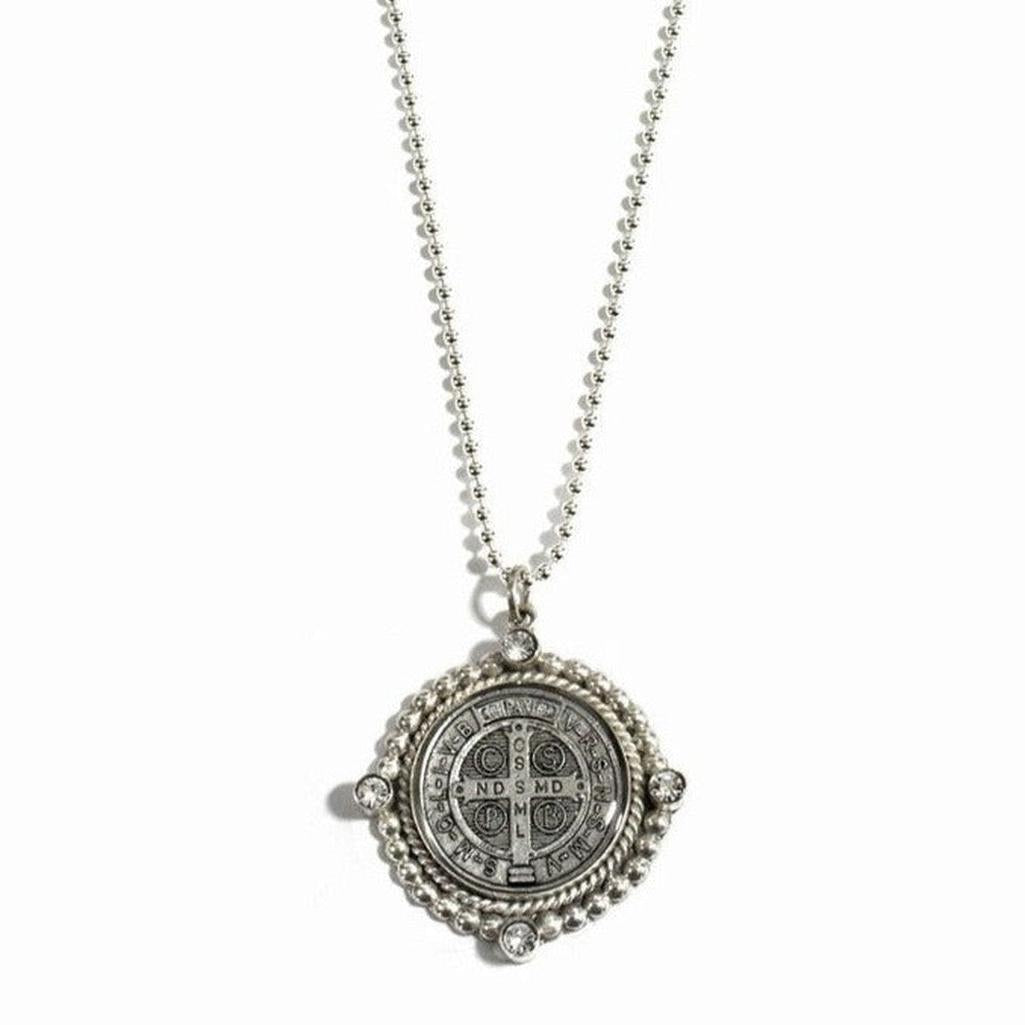 Celebrate your loving spirit with the San Benito Charm in Gold with your Choice of crystals. It features a genuine San Benito coin set in an elegant rope and bead design set with four shimmering crystals. The pendant is gold dipped, measures approximately 1.25" in diameter and comes with a matching 32" ball chain.